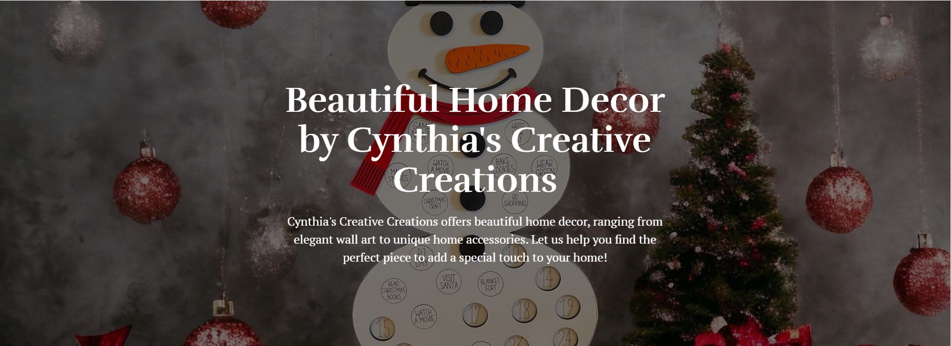 I am absolutely in love with the home decor items I purchased from Cynthia's Creative Creations! Their unique designs and high-quality make my house feel like a home. - John Smith